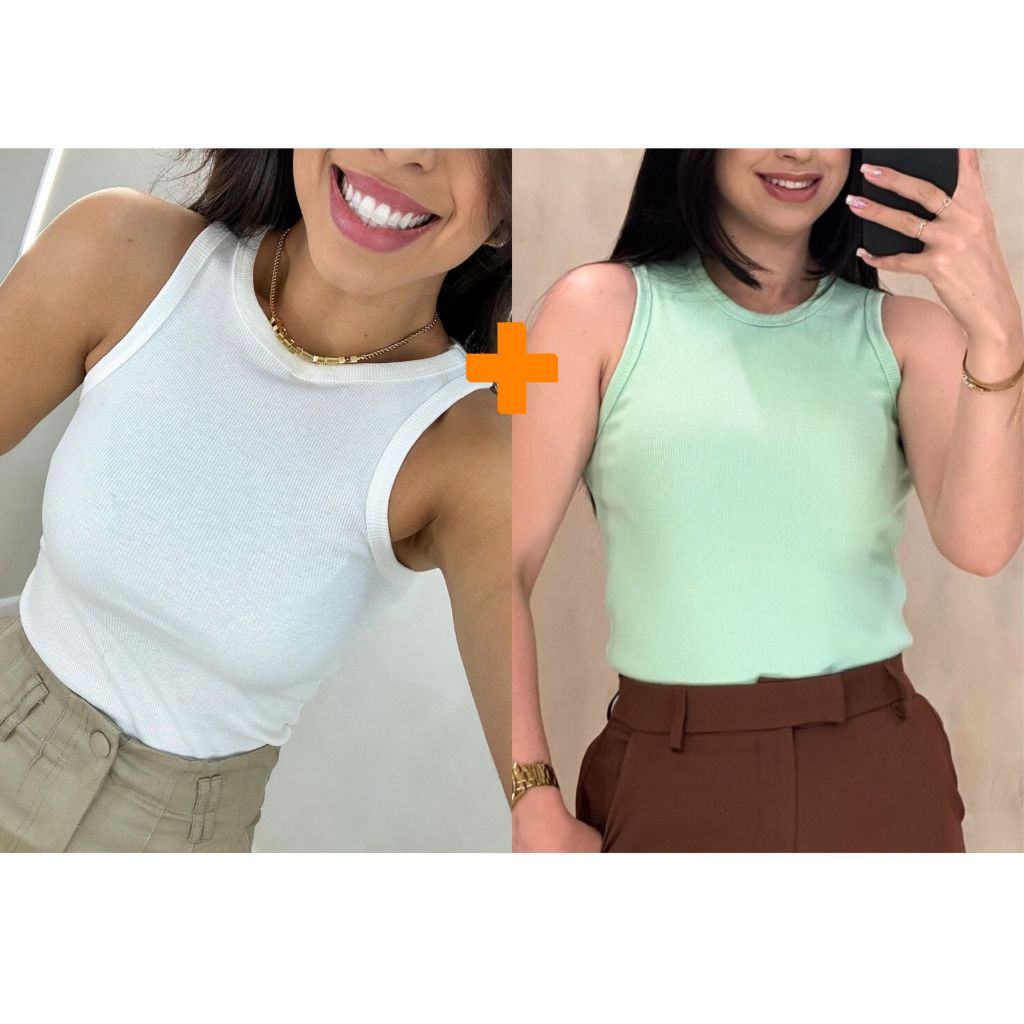 kit com 2 Blusas Feminina modelo Regata, sabe aquela blusa que não pode faltar no seu guarda-roupas? Pois ela dá certo com tudo, seja em looks mais sociais quanto despojados, seja para trabalhar, estudar, sair e etc. E é por isso que você não pode ter só uma, mas, não se preocupe pois preparamos uma promoção super especial onde você leva duas pelo preço de uma!