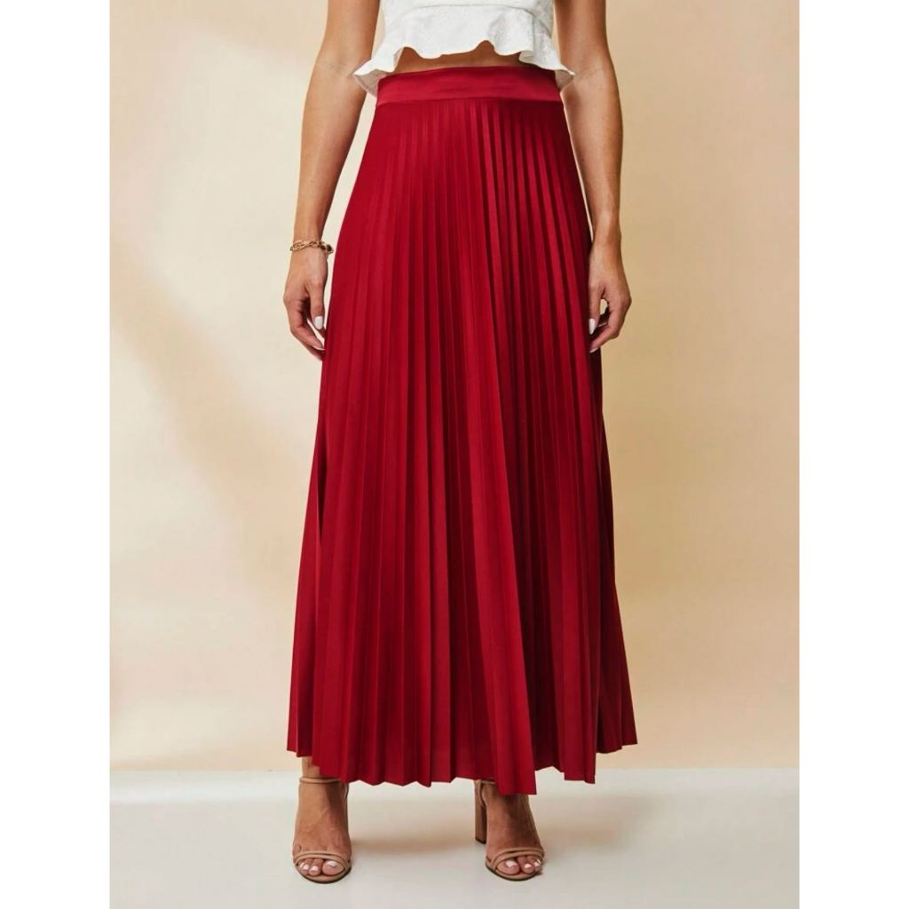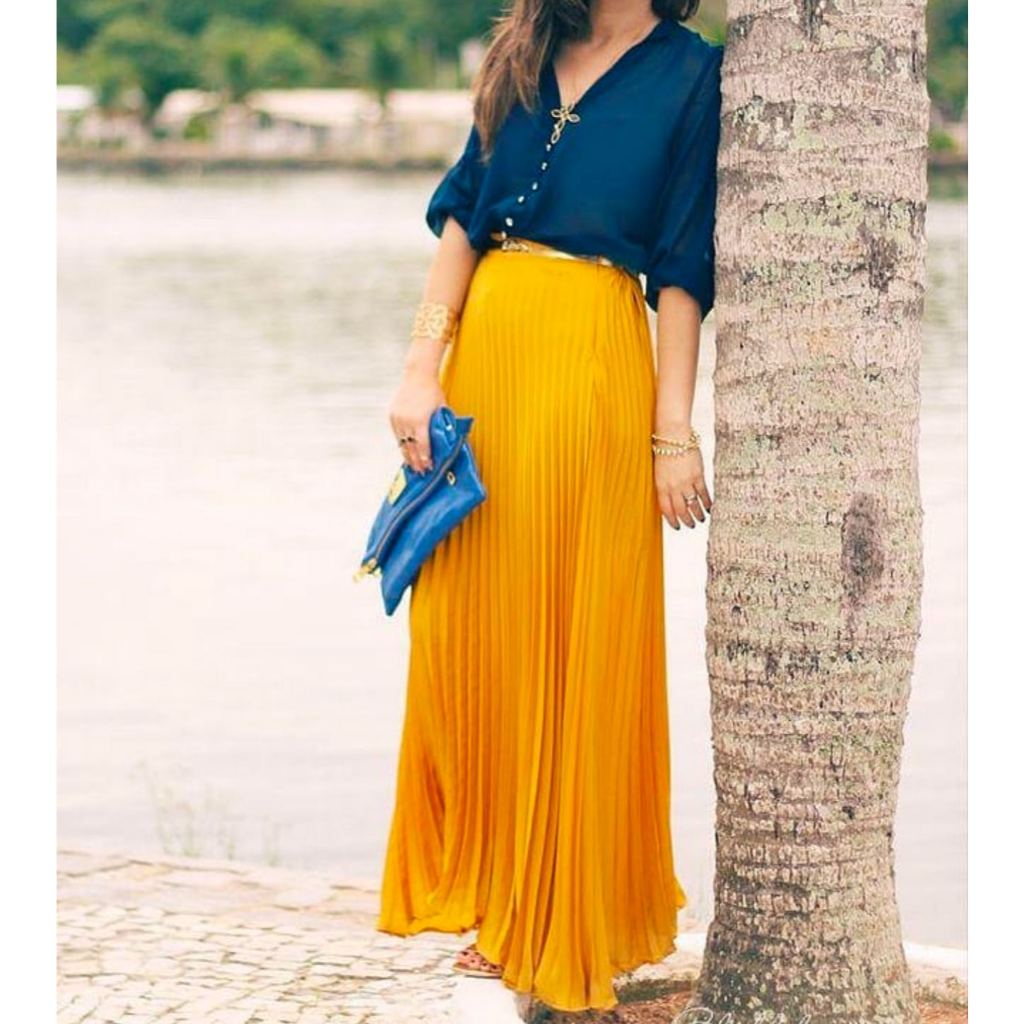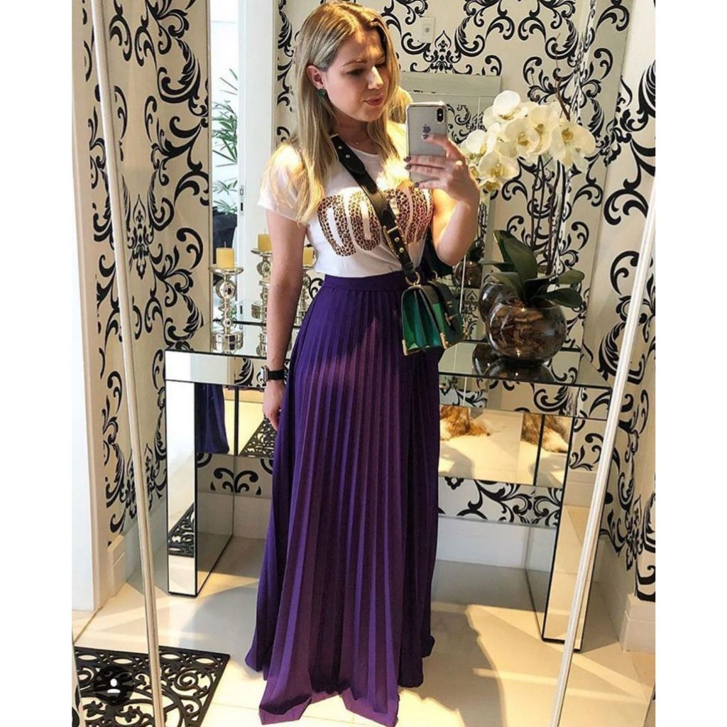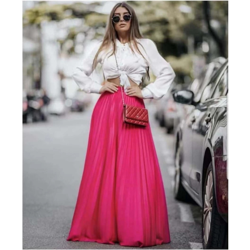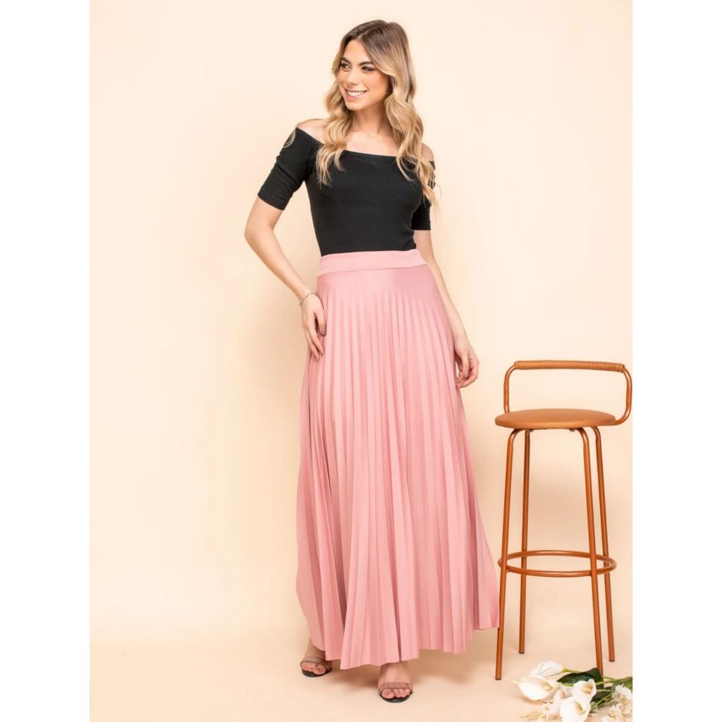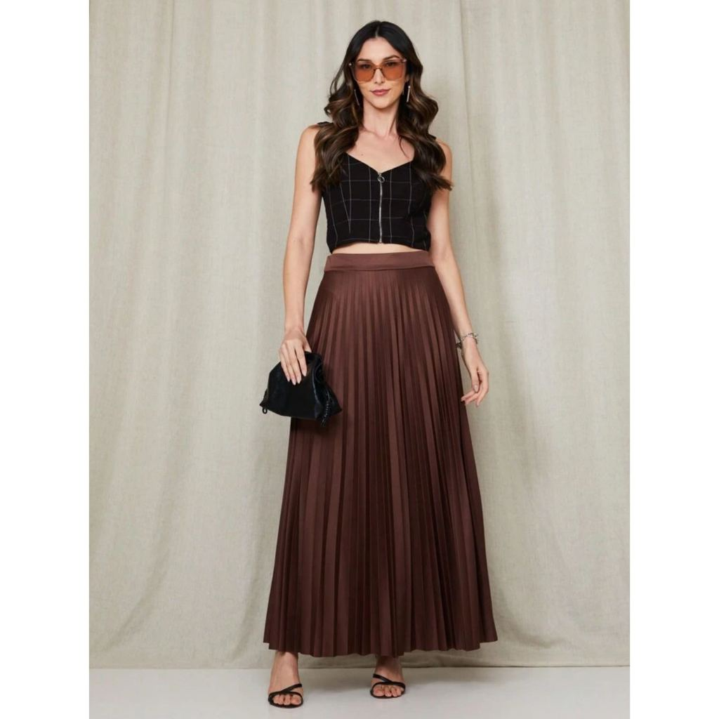 Saia Plissada Longa Evangélica Elegante Forrada Lisa