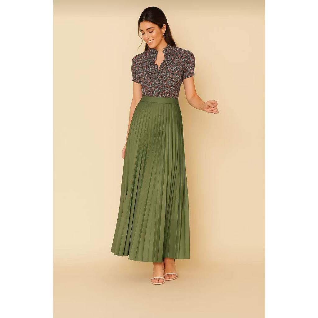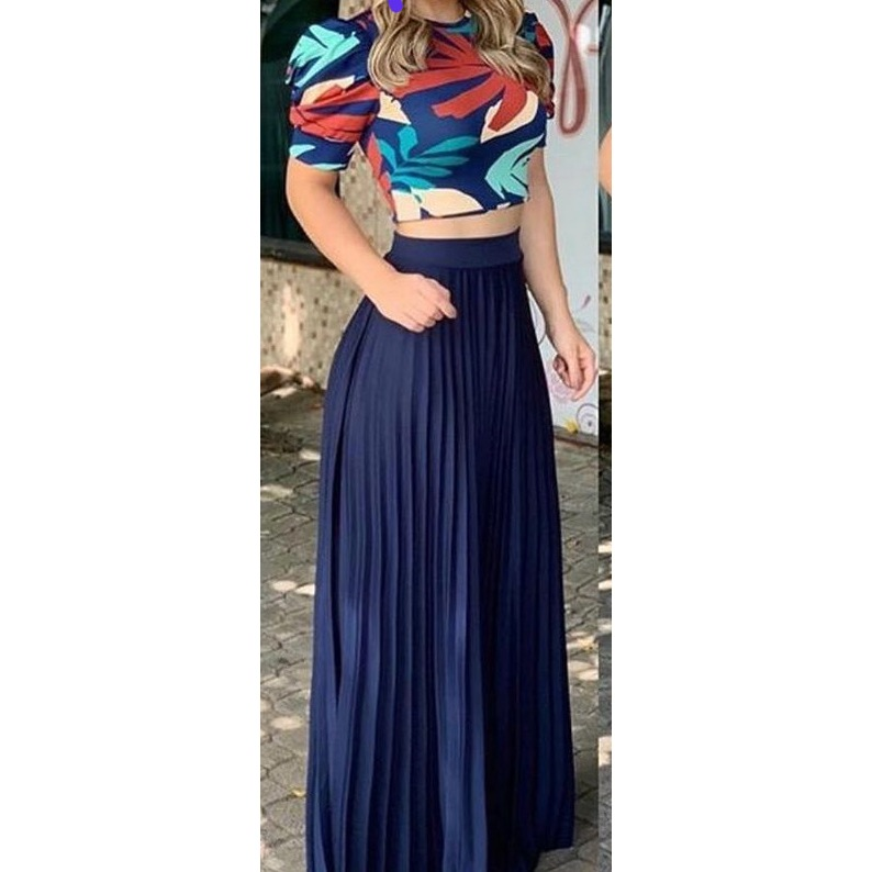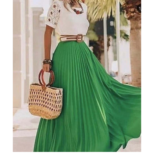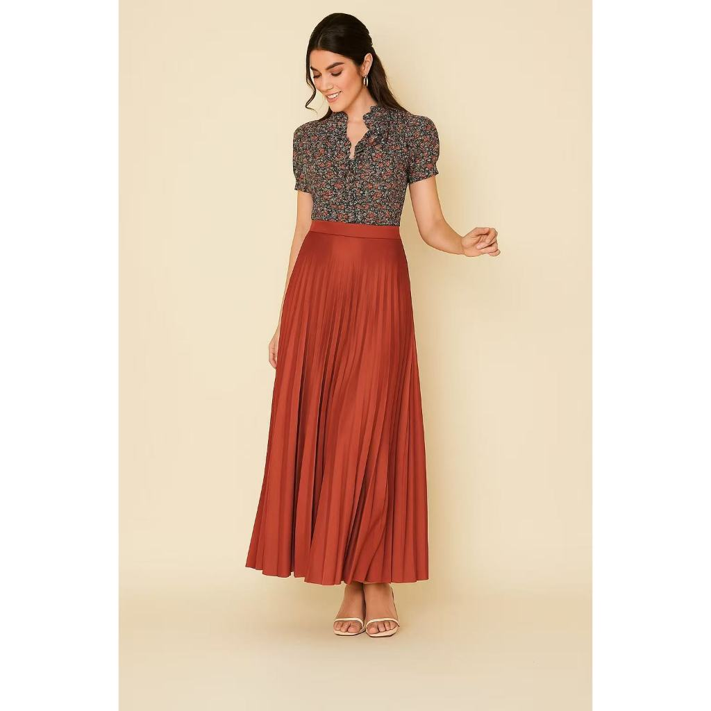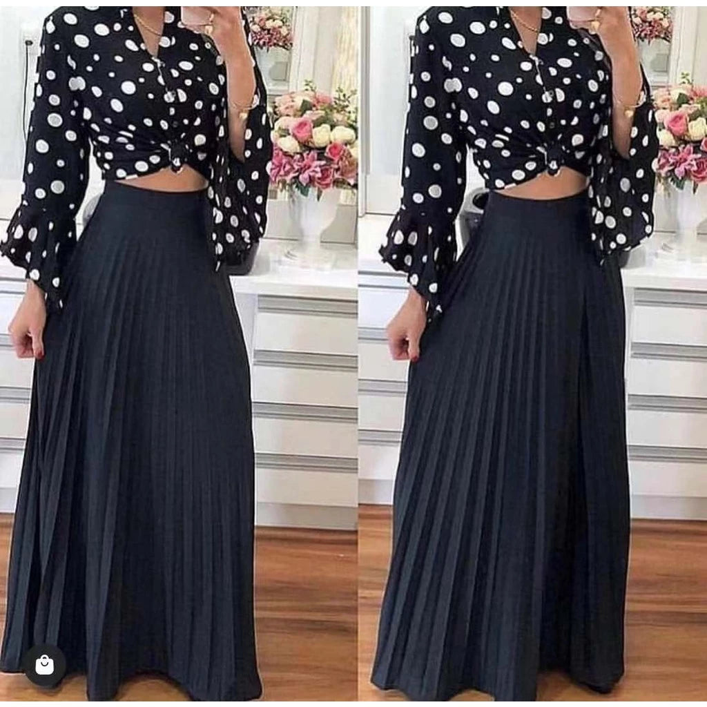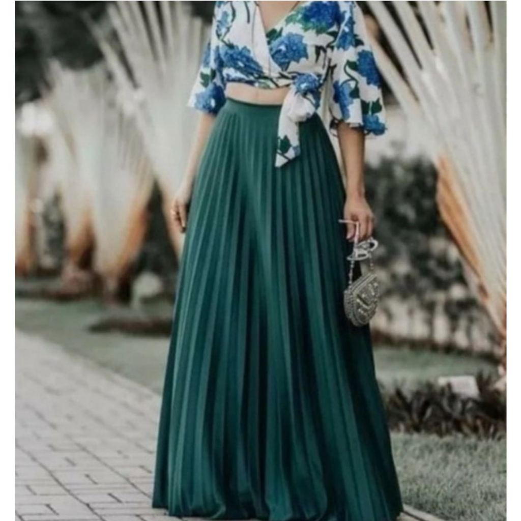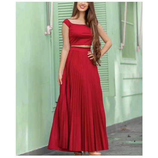 Saia Plissada Longa Evangélica Elegante Forrada Lisa